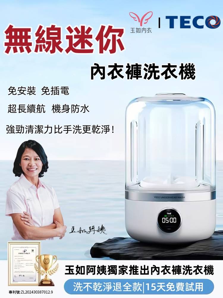 半小時前玉如阿姨獨家推出TECO迷你洗衣機,一鍵啟動解放雙手含銀離子持久抑菌,小巧機身功能齊全整機防水防潮防濕 - 內衣內褲分開洗 限時特惠 二入組NT$1990
