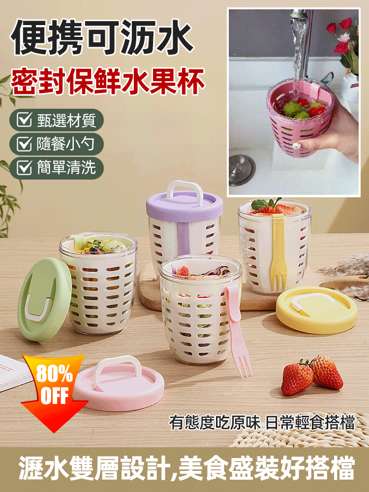 25分鐘前便攜可瀝水密封保鮮水果杯 - 買一送一899